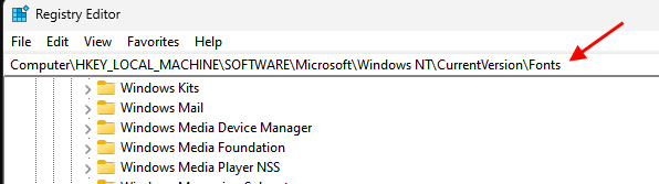 Computer\HKEY_LOCAL_MACHINE\SOFTWARE\Microsoft\Windows NT\CurrentVersion\Fonts