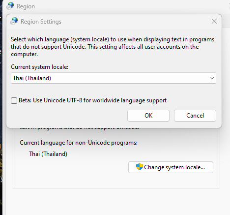 เข้าแท็บ Administrative > Change system locale เลือก Thai